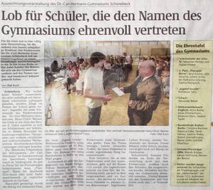 Am 20. April 2006 wurden wie in jedem Jahr nach 10-jähriger Tradition Schüler des Gymnasium für ihre besonderen herausragenden Leistungen durch den Förderverein ausgezeichnet. Durch den Abend führte wieder Lothar Schlünz, der 2. Vorsitzende unseres Vereins.